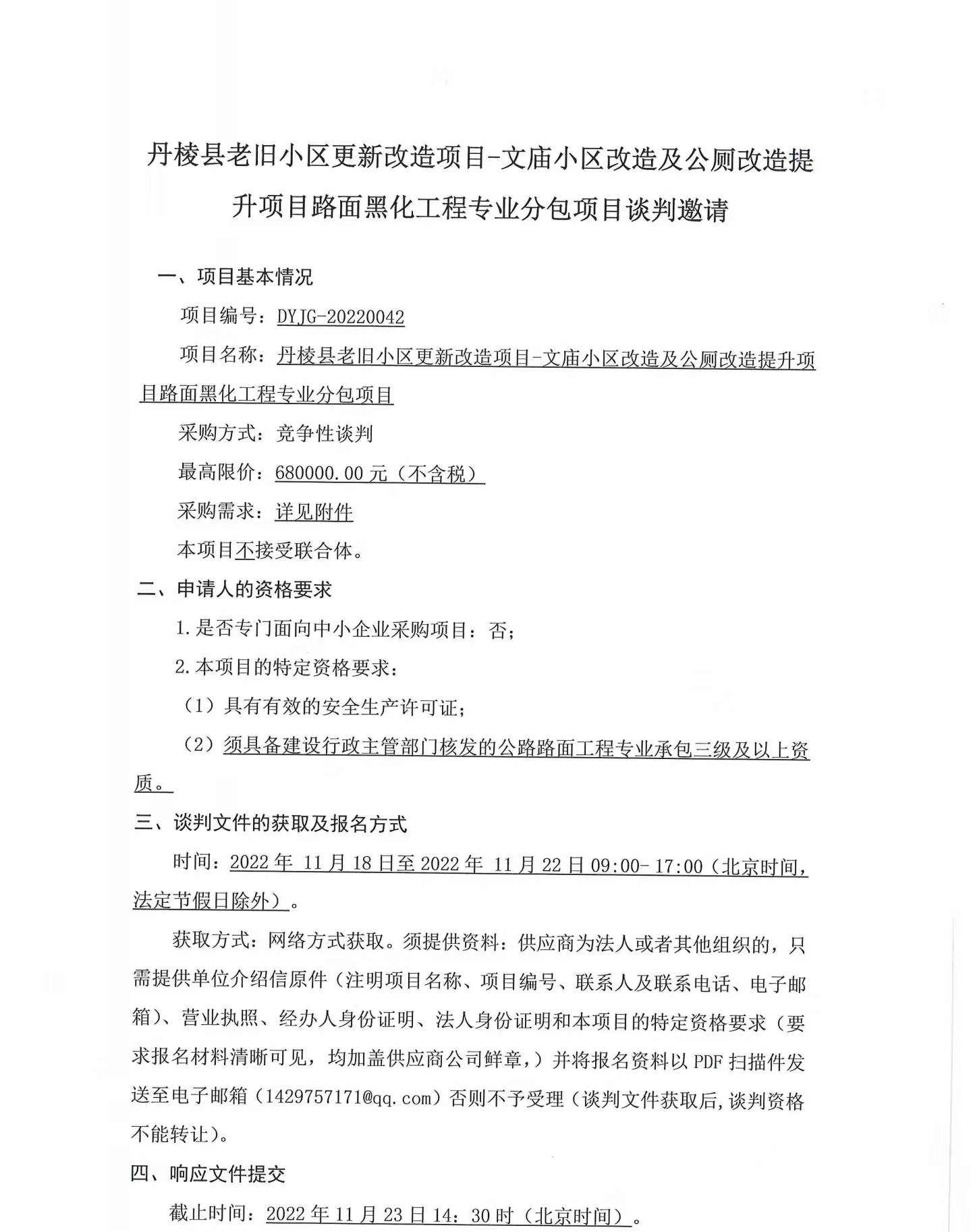 丹棱縣老舊小區(qū)更新改造項(xiàng)目-文廟小區(qū)改造及公廁改造提升項(xiàng)目路面黑化工程專業(yè)分包項(xiàng)目競爭性談判邀請公告