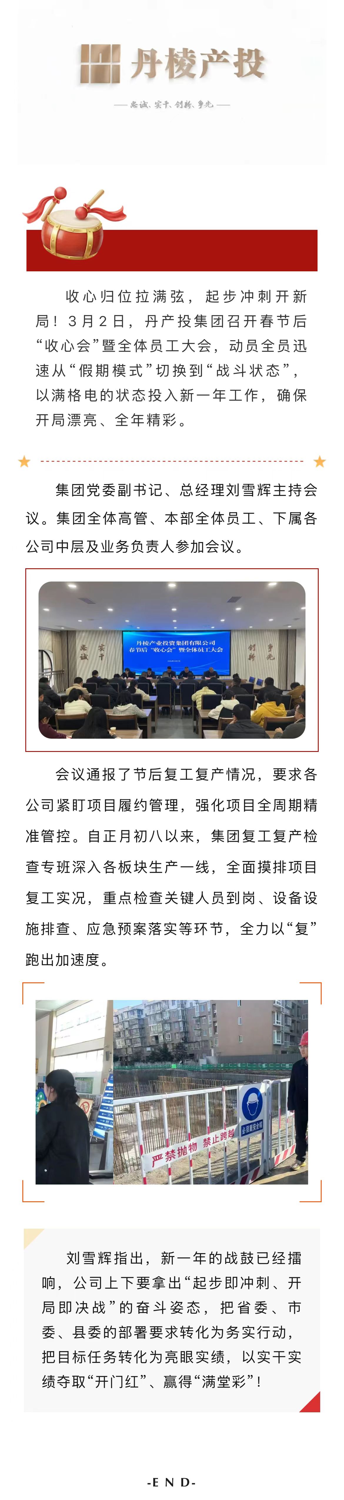 收心歸位拉滿弦 起步?jīng)_刺開新局——丹產(chǎn)投集團(tuán)召開春節(jié)后“收心會(huì)”暨全體員工大會(huì)