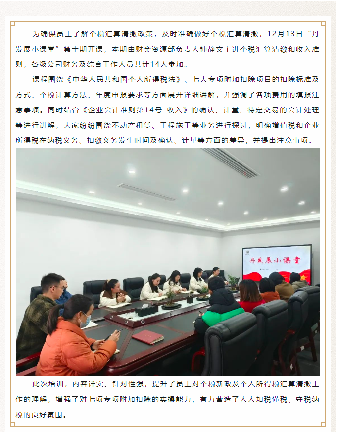 個(gè)稅匯算清繳培訓(xùn)——“丹發(fā)展小課堂”第十期開(kāi)講啦!