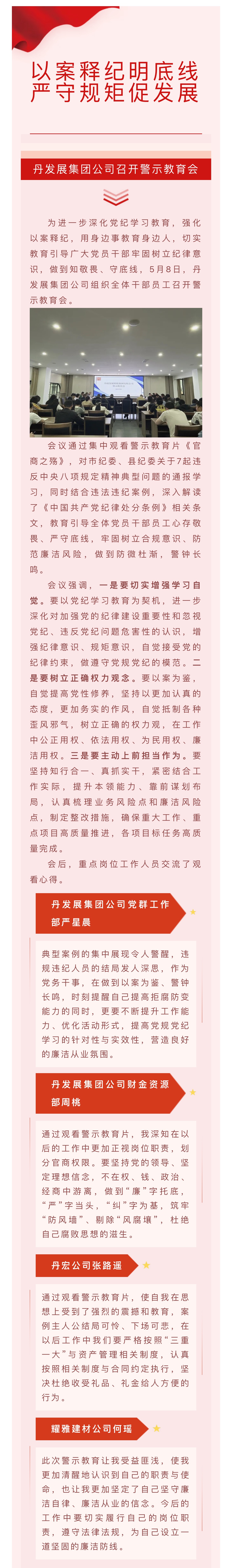 以案釋紀(jì)明底線,嚴(yán)守規(guī)矩促發(fā)展丨丹發(fā)展集團(tuán)公司召開警示教育會